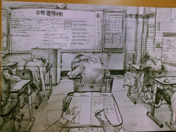엄청난 그림실력을 이용해 전국의고사시간에 자신의 상황을 그림으로 그려냈다. 이런 걸 재능낭비라고 한다.