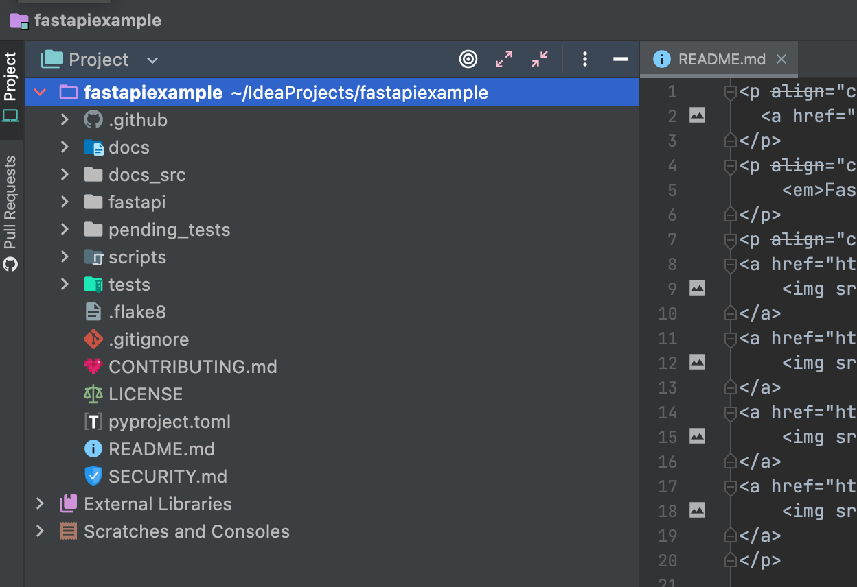 당연히안된다. Fastapi는 다른 의존패키지가 꽤나 많기 때문이다. poetry에서 사용되는 pyproject.toml파일을 살펴보면 FastAPI의 프로젝트 의존성이 어떻게 구성돼있는지 알 수 있는데 각설하고 이걸 실행하고 싶으면 pyproject.toml의 requires와 dev란 안에 있는 애들을 어떻게든 설치하면 된다.