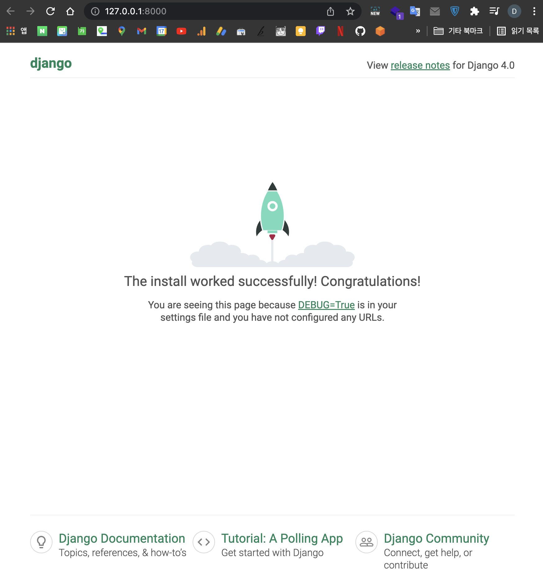django project가 생성되고 실행도 정상적으로 된다. 정말 사랑할 수밖에 없는 프레임워크다. 뭐 아무튼 이걸 commit해서 올려보자.