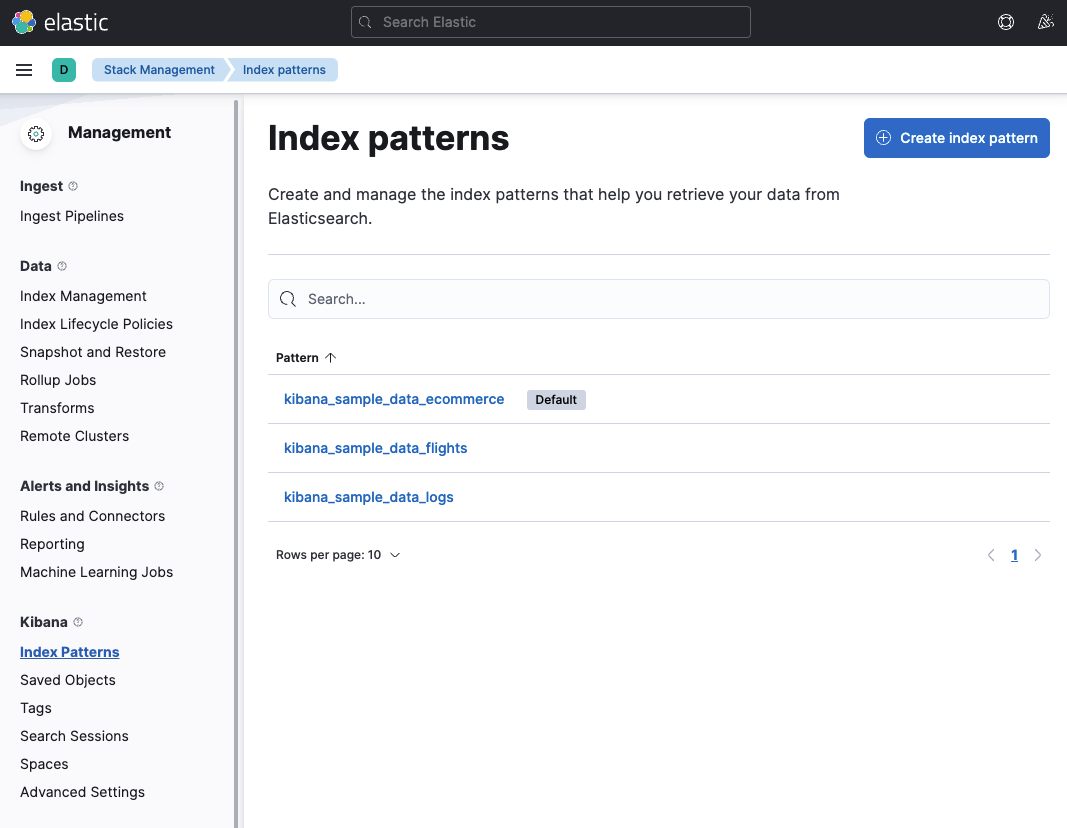 그럼 이렇게 수집하는 데이터를 kibana에선 어떻게 확인할까. 위 syslog.conf파일에서 볼 수 있다시피 syslog-demo라는 이름의 index로 해당 데이터가 수집되고 있는 걸 확인할 수 있다. 여기에서 index란 무엇이냐, 보통 RDBMS의 database에 해당하는 것이라 보면 된다. 용어를 비교해보자면
