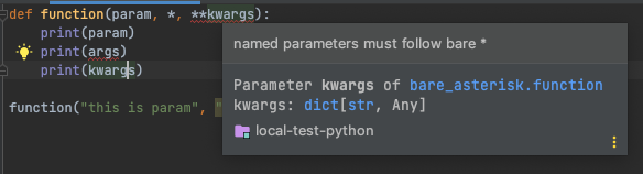 자 그럼 bare asterisk, nameless asterisk는 어떤 역할을 할까. 위에서 말했다시피 아무 역할도 하지 않는다. 그저 사용자의 편의를 위해서 존재한다.