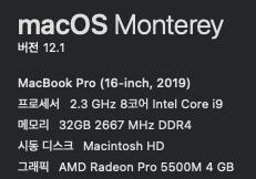 이만큼의 시간이 걸린다. 내 맥북의 스펙은