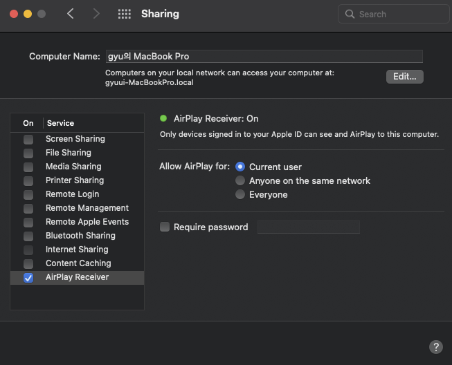 하지만 또 바로하면 안되고 맥에서는 port 5000번을 ControlCenter에서 사용하고 있는데 redash의 default port인 5000번과 겹치므로 해당부분을 설정해줘야 한다. 맥의 System Preferences -> Sharing -> AirPlay Receiver를 체크해제해야 redash가 5000번 포트를 사용할 수 있게 된다.