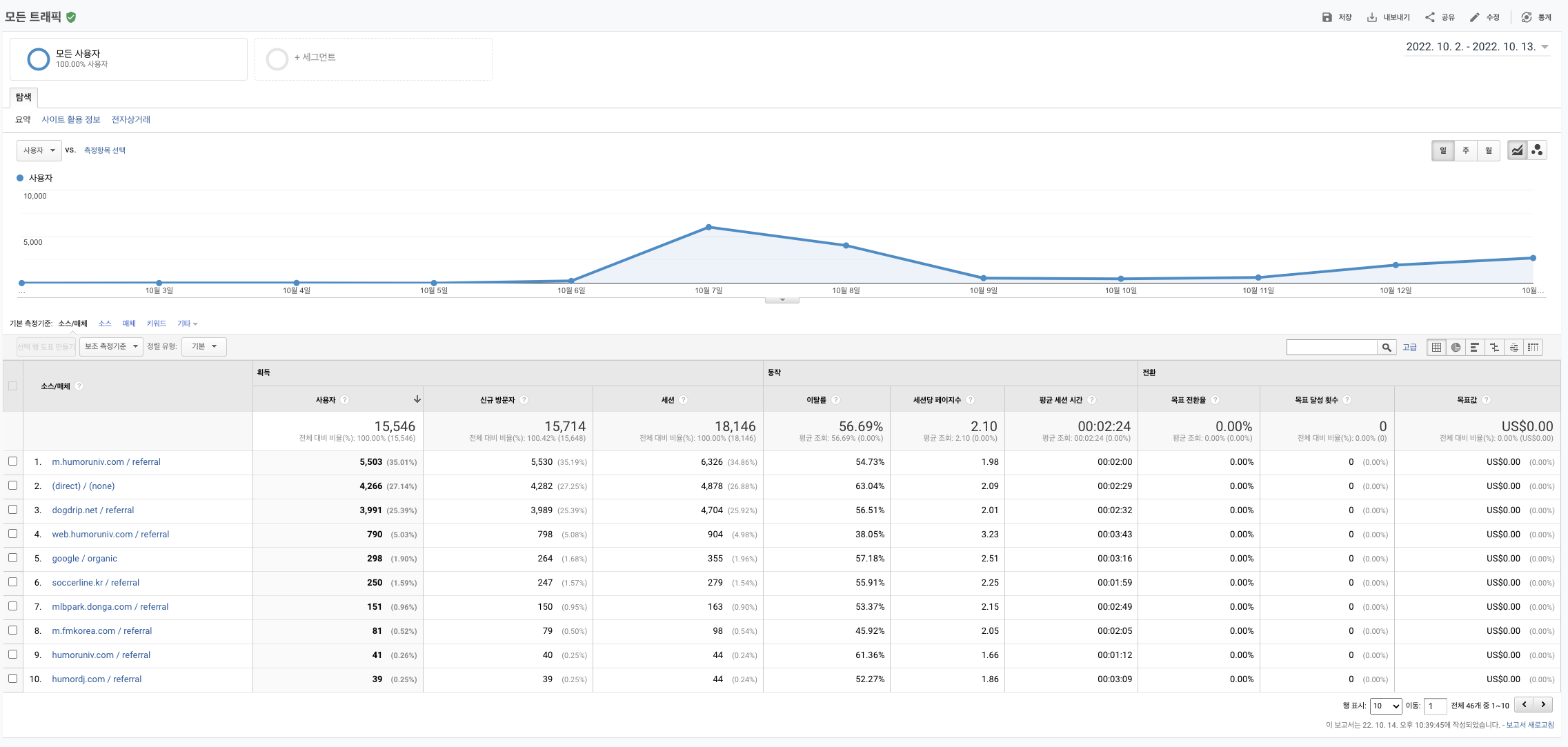 트래픽을 확인해봤는데 뭔가 인터넷 커뮤니티에서 뿌려진 듯하다. 근데 2위를 차지하고 있는 저 (direct) / (none)은 어느곳일까... 궁금하다.