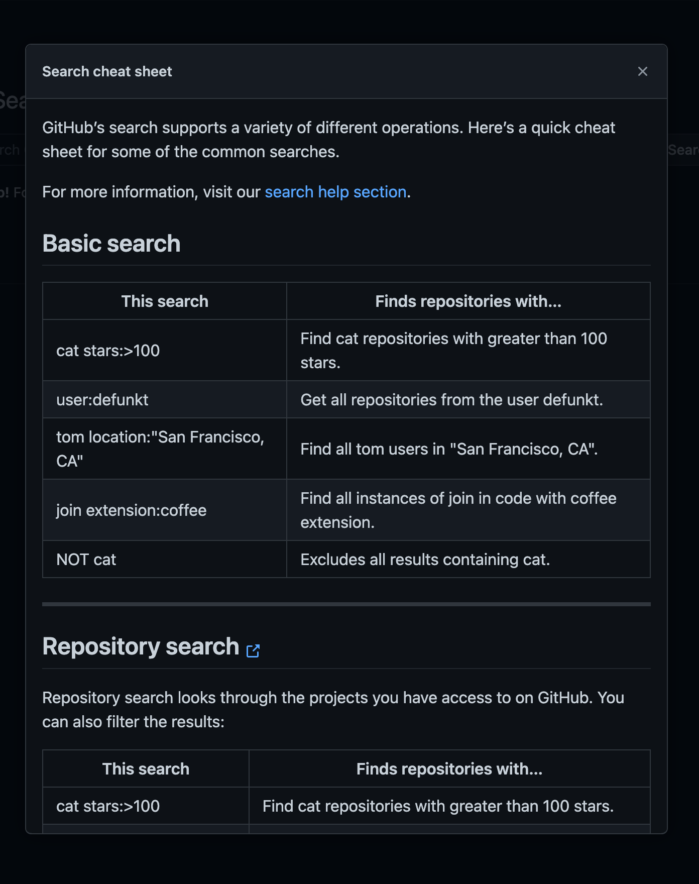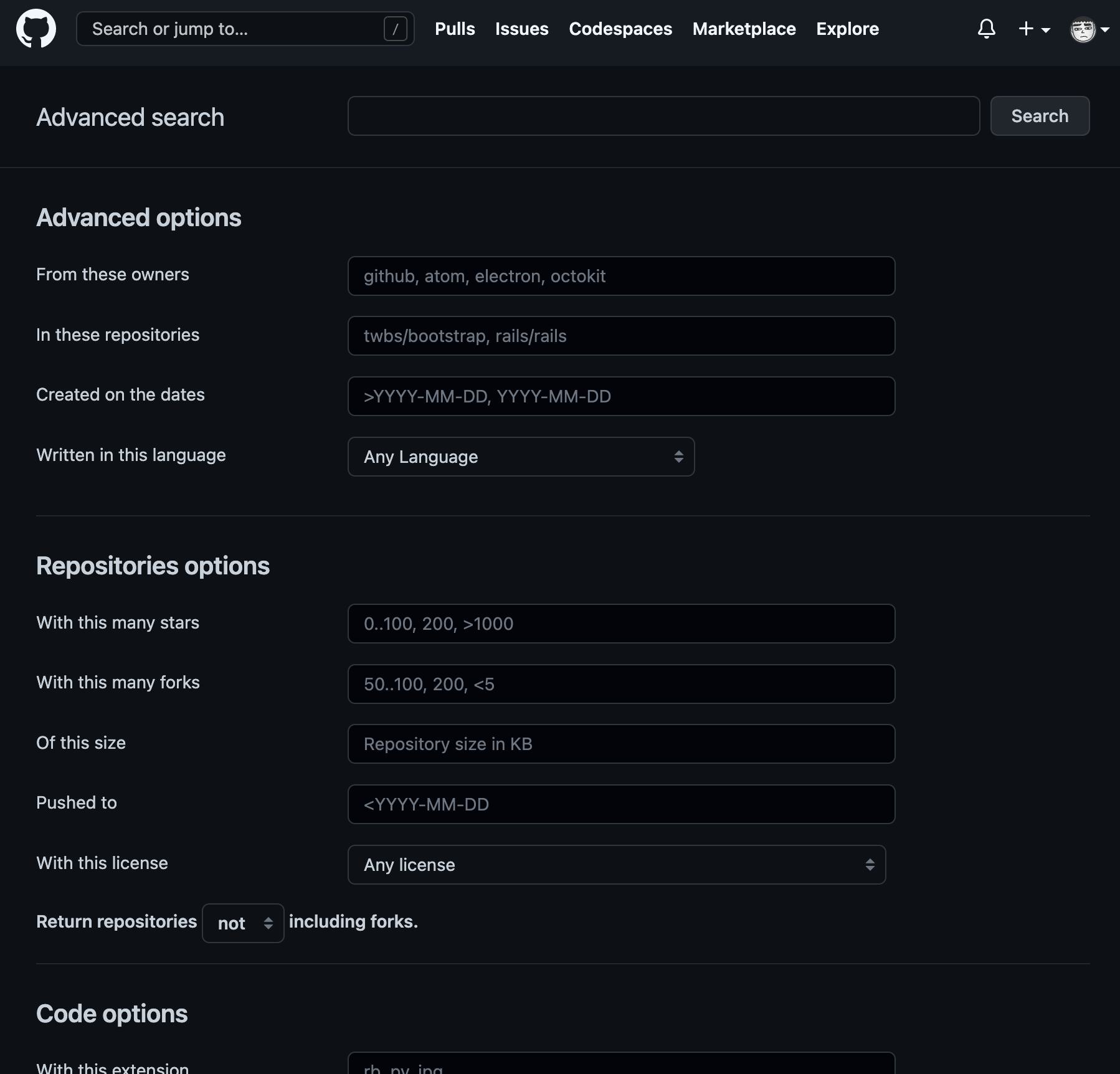 -> advanced (https://github.com/search/advanced)