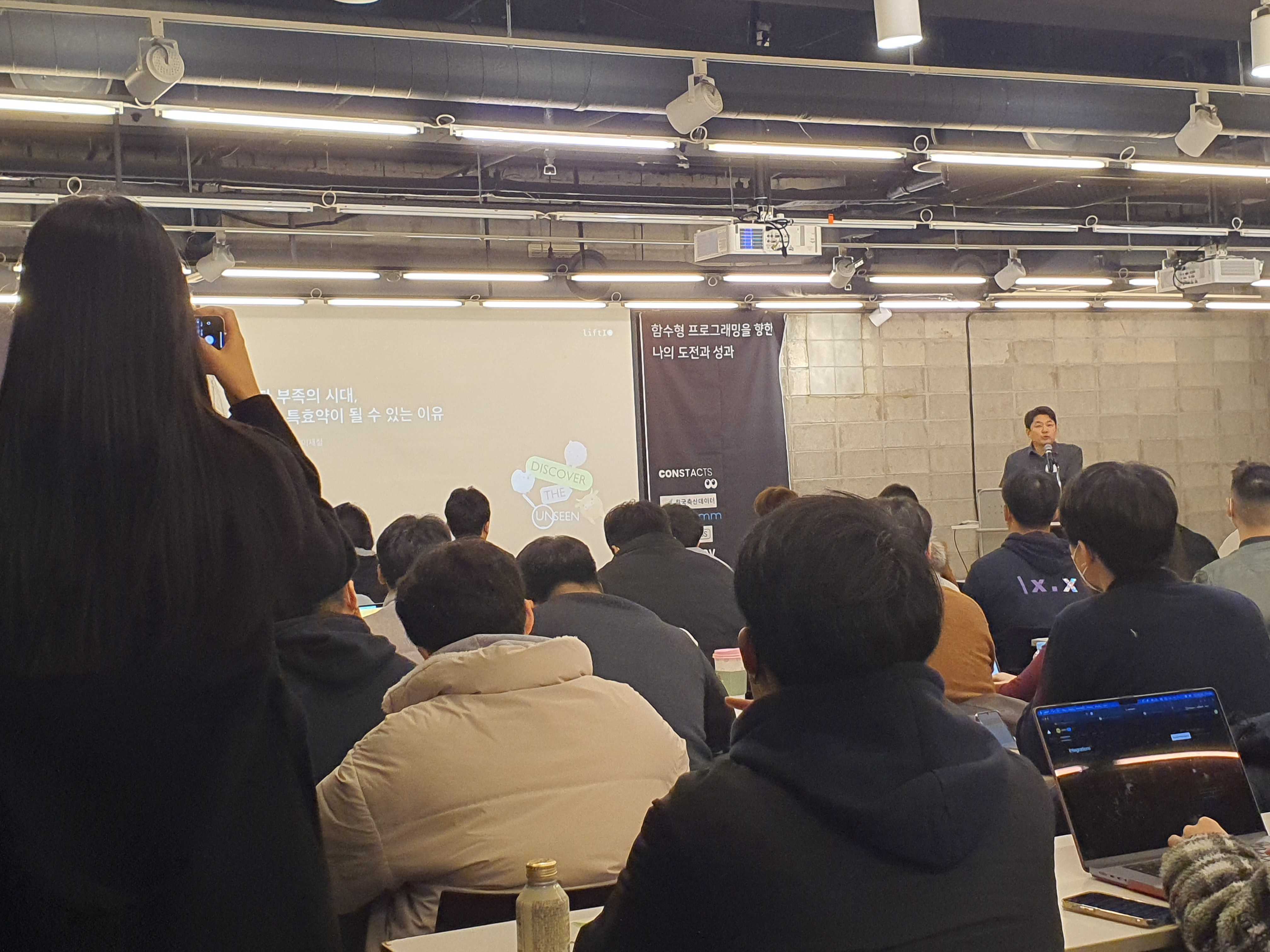 결론부터 말하자면 세션중 가장 주목도가 높았던 것 같다. 함수형 언어라는 게 사실 함수형 언어 스택 자체가 개발자의 복지라는 농담이 있을 정도로 한국의 IT회사들에서는 손에 꼽을 정도로만 사용하고 있을 뿐더러 대중적인 언어들(Python, Java, JS/TS, CPP, Kotlin...)자체가 전부 OOP기반으로 만들어진 것들이라 개인적으로 공부하려고 해도 이 함수형 언어와 객체지향 언어간의 문맥전환이라는 게 정말 한국에서 살다가 갑자기 한시간만에 외국에서 살아야 하는 것만큼 정말 다르기 때문에 사실 현업과 병행하며 공부하기 쉽지 않다. 나조차도 Rust를 책만 사고 못읽고 있으니 말이다.