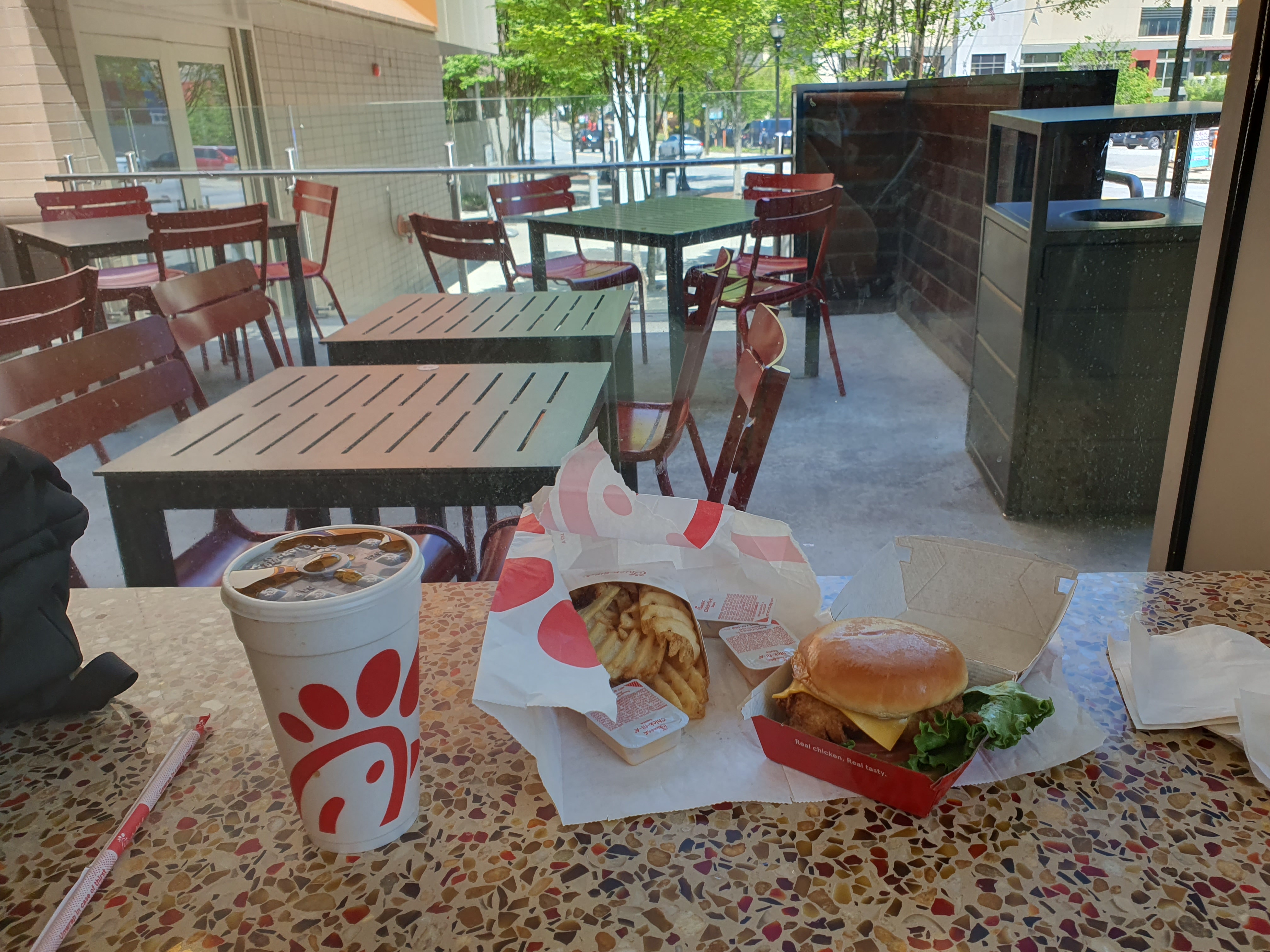 올림픽 공원 윗쪽에 있는 대학교 풋볼 명예의 전당 옆에 있는 칙필레를 갔다. 사실 태어나서 풋볼, 그러니가 미식축구나 NFL관련된 컨텐츠라곤 한창 화제가 됐던 NFL선수들 피지컬 퍼포먼스 영상과 아이실드21이었기 때문에 들어가보지도 않았다. 그리고 아래 메뉴가 동생이 강추했던 칙필레 디럭스. 맛있었다!