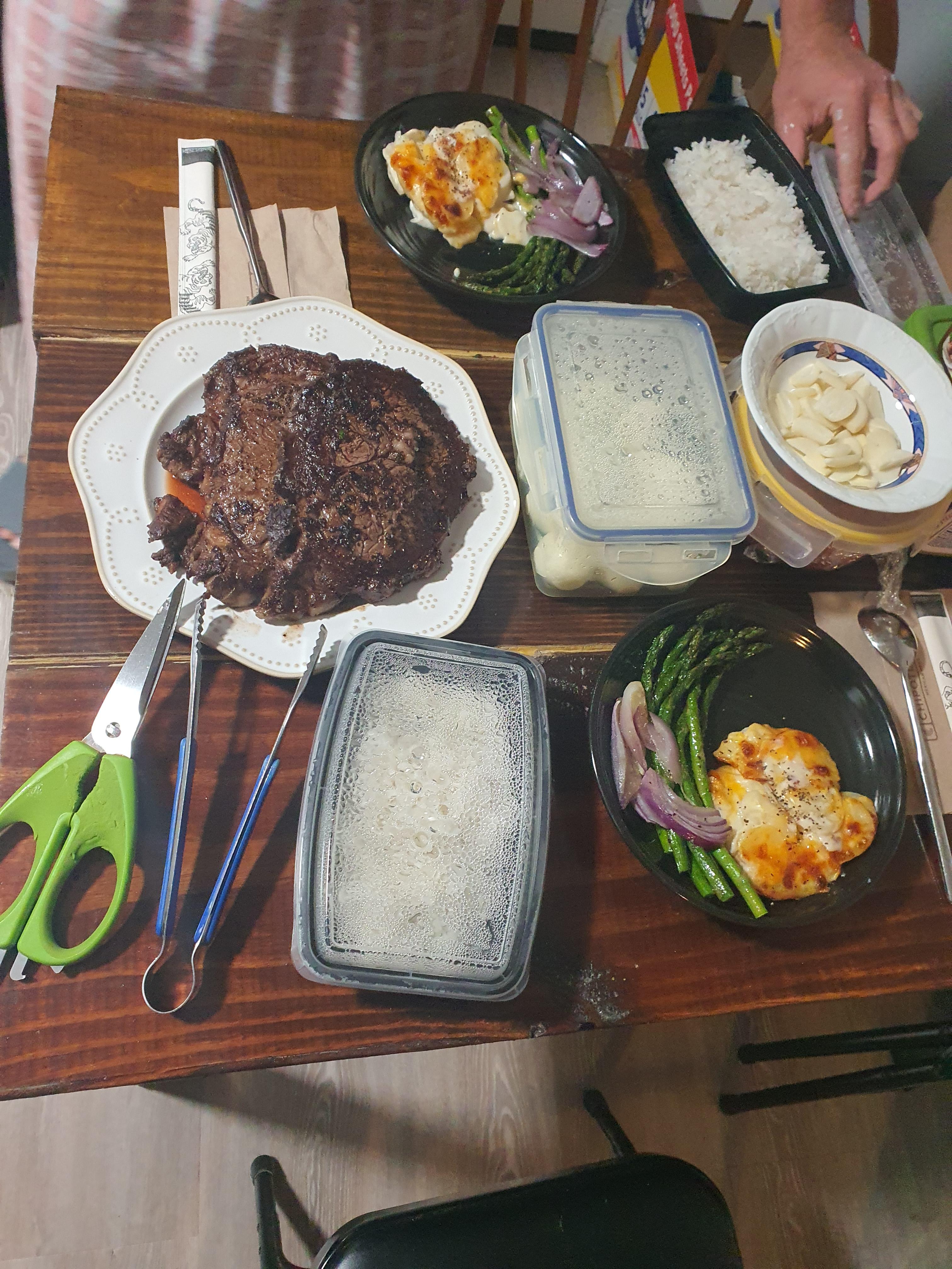 그리고 동생과 제수씨가 식사를 만들어줬는데 한국 서타일로 스테이크 + 쌈장 + 마늘 + 김치 + 밥 조합으로 먹고 이날은 끝났다. 너무 재밌고 무섭고 맛있고 지리는 하루였다.