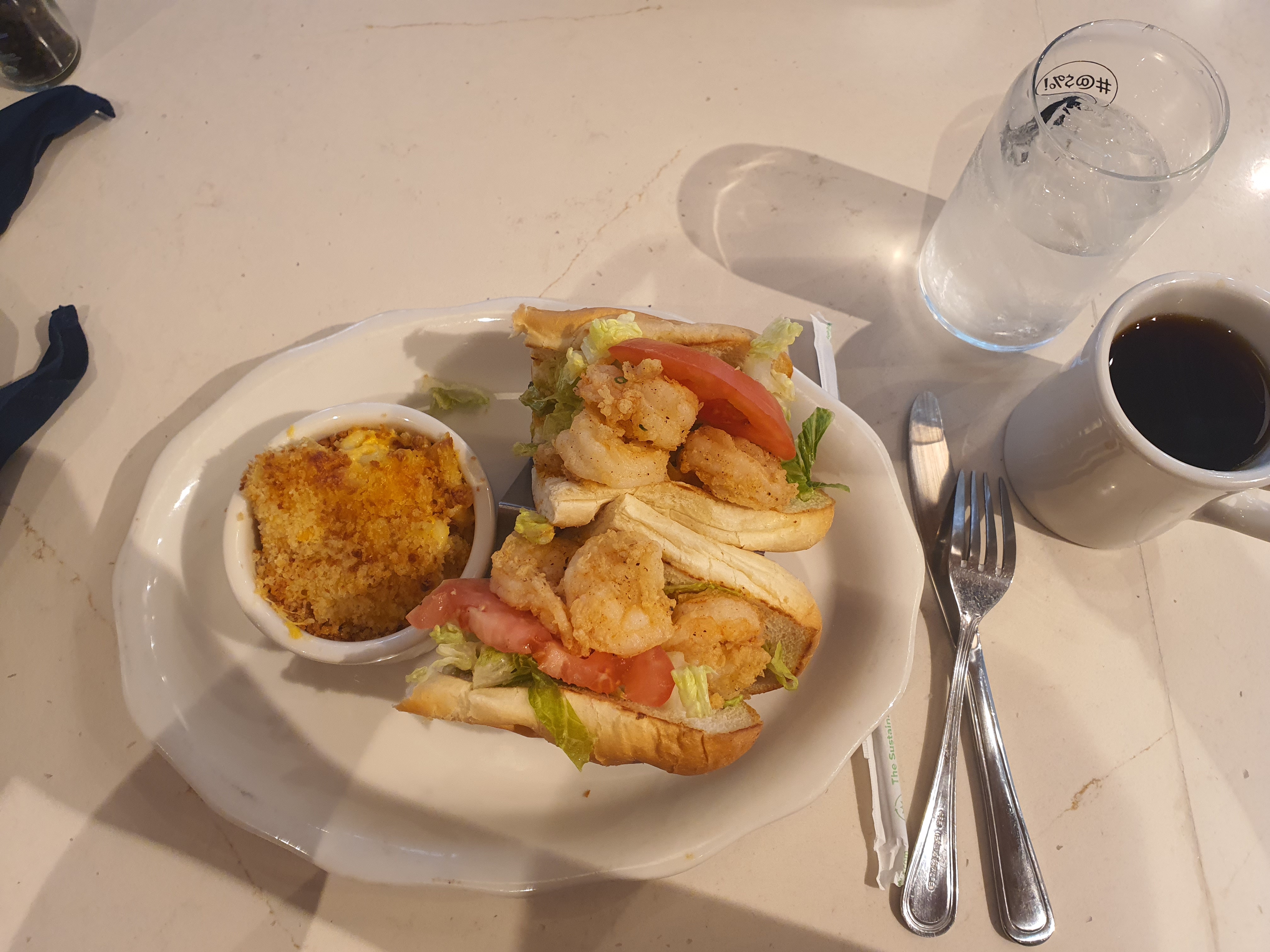 날씨가 끝나고 투펠로 허니에서 새우샌드위치를 먹었다. 맛있었다.