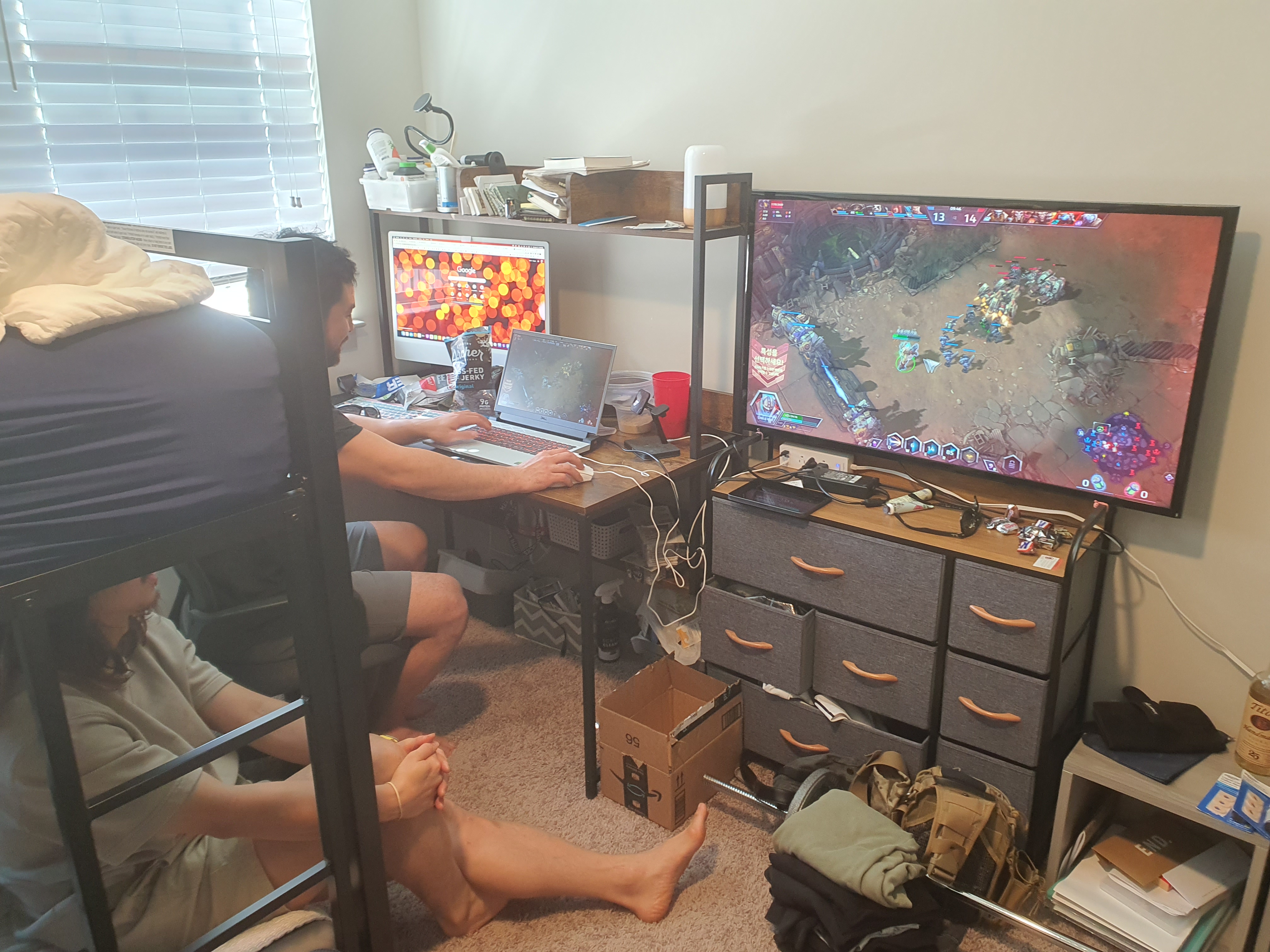 돌아와서는 미처 다 먹지 못한 괴물크기의 립아이와 삼겹살 등등을 마저 먹고 히오스도 하면서 시간을 보냈닼ㅋㅋ 중댐은 출시부터 지금까지 꾸준히 하고 계셨다. 롤충인 나도 출시당시에는 몇판 해봤다가 다시 롤로 돌아갔었는데 이것도 나름 추억.