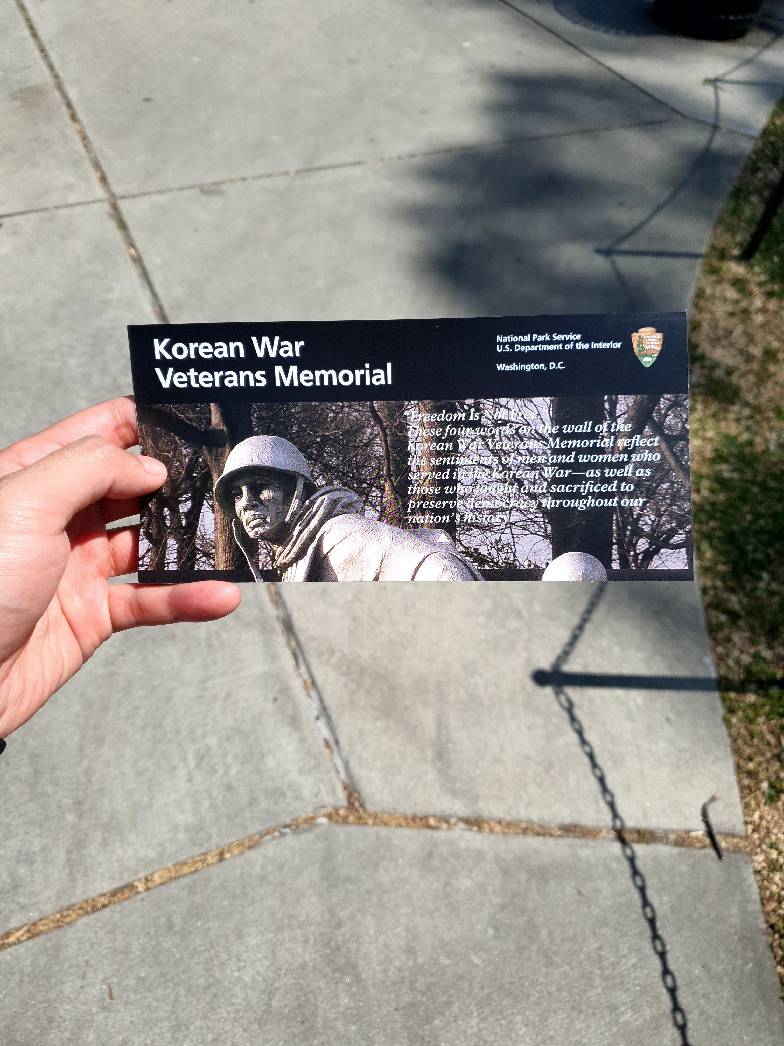 한국전쟁 기념물도 다녀왔다. 우리나라에 자유를 선물해주신 고마우신 분들을 보니 뭔가 가슴이 뭉클해졌다. 사실상 이분들 때문에 내가 태어났고, 또 자랐고, 또 직장을 갖고 돈을 벌고 휴가를 내고... 또 링컨기념관 남쪽에 위치한 이 한국전쟁 기념물에 오기까지의 여정이 결국에는 내 눈앞에 있는 수많은 이름들 때문이라고 생각하니까 너무 감사하고 고맙고 또 기분이 이상했다. 이런 생각이 들었다. 우리는 모두 이분들의 자녀들이다.