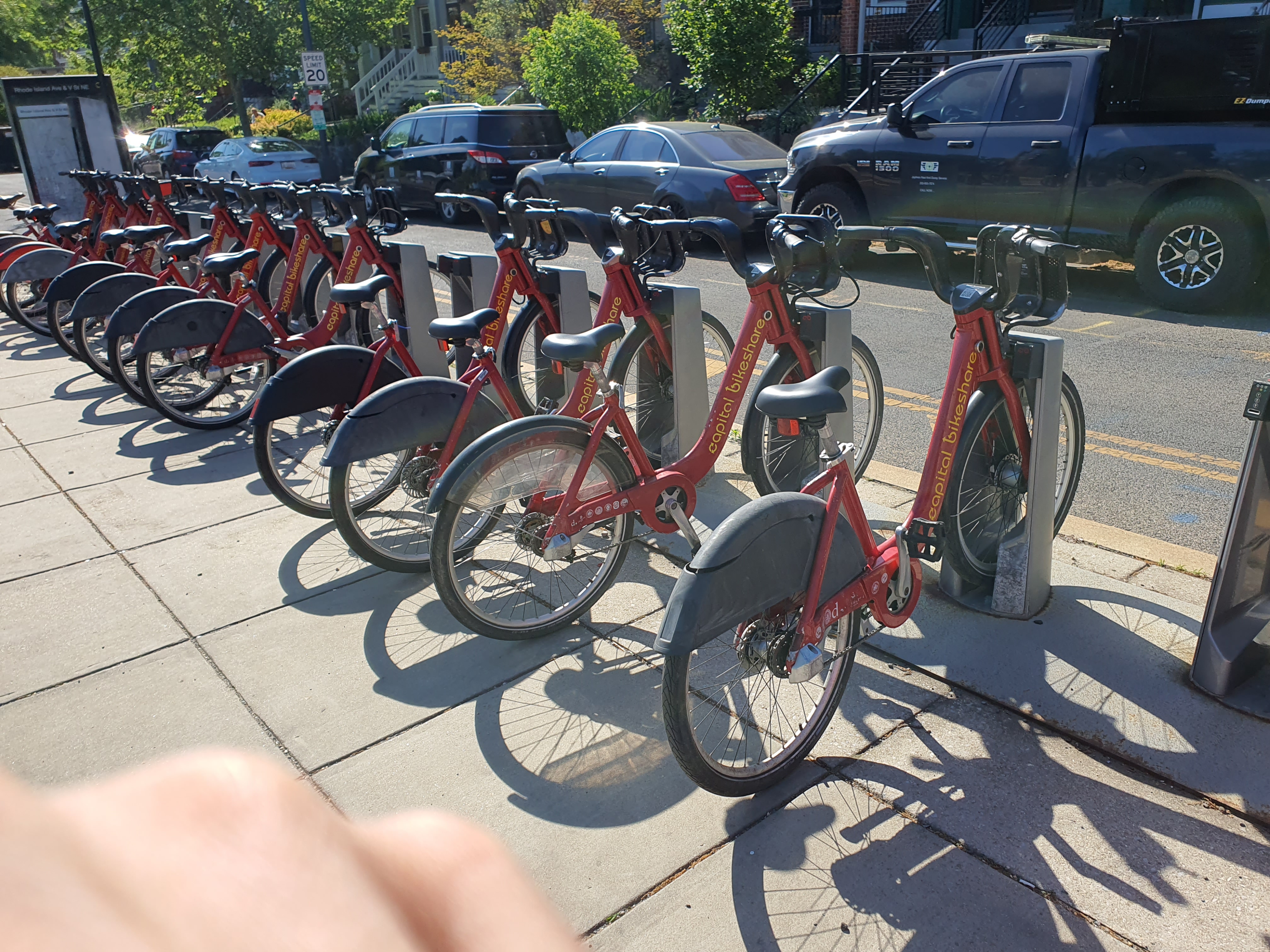 그리고 자전거를 타러 갔다. 이 숙소가 진짜 완벽한게 주변에 Capital bikeshare 스테이션도 있다. 쉽게 말하면 그냥 워싱턴 따릉이라고 보면 된다. 정액권 없이 사용하면 한번 Unlock에 1$, 분당 0.05$이다. 하지만 하루종일 사용할 수 있는 정액권이 8$이고, 이것으로 한 번 빌리면 최대 45분까지 탈 수 있으므로 고민의 여지가 없다, 하루 3번 이상 타게 될 거면 무조건 종일권이 이득이므로 종일권을 매일 끊어서 탔다.