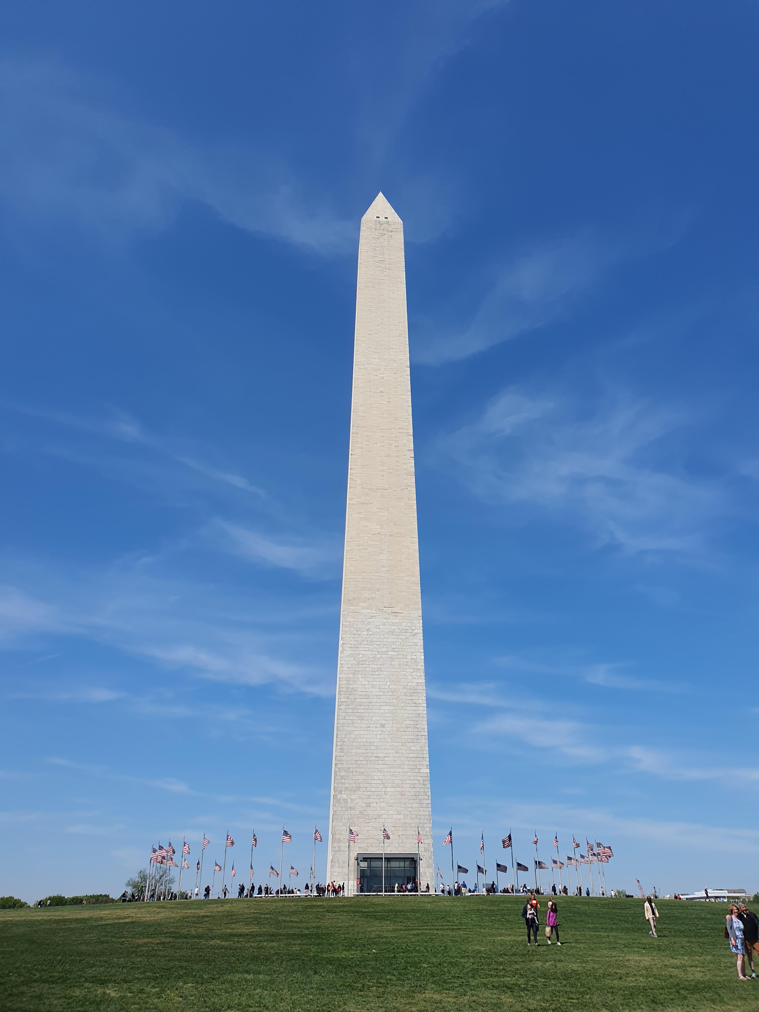 쾌청한 날씨에 우뚝 서있는 워싱턴 기념탑도 보고