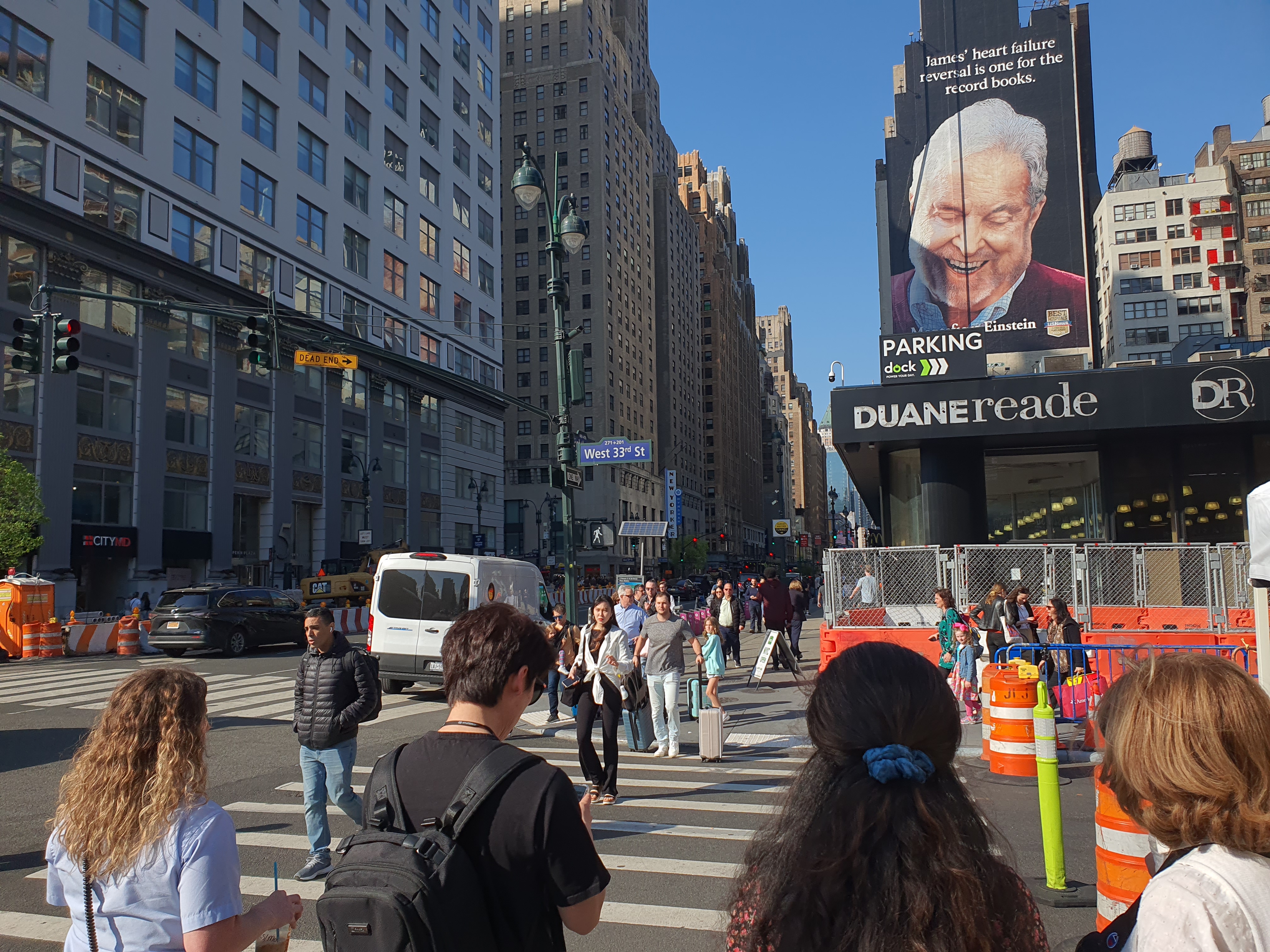 뉴욕의 첫번째 인상. 진짜 사람 많다. 사람 드럽게 많다. 사람 진짜 드~~~~~~~~~~~~~럽게 많다. 세상 온곳 온천지가 에버랜드다. 그리고 여기에서 중댐이 알려주신 토막상식. 뉴욕 주법이 건축물은 옆 건출물과 붙어서 건축해야해서 건물과 건물사이에는 골목이 없고 도로만 존재할 수 있다. 그래서 도시 자체도 정말 빽빽하고 꽉찬 그런 느낌이 많이 들었다.