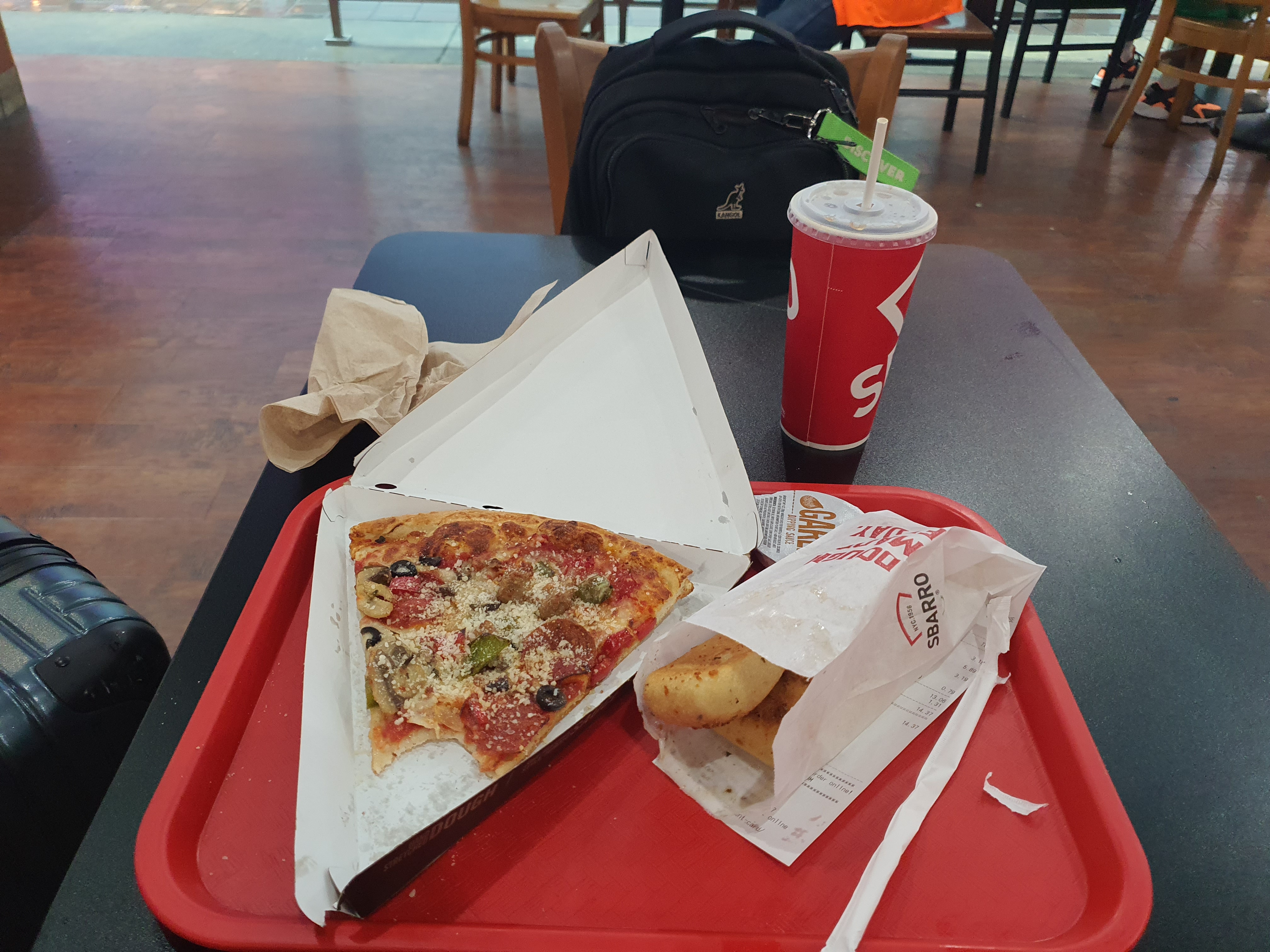 쓰바로라는데서 야무지게 피자 + 갈릭 브레드스틱을 먹었다. 피자는 그냥저냥 맛있었는데 브레드스틱은 진짜 그냥 빵. 갈릭이라는 이름은 왜 붙였을까. 그리고 여기에서 재미있었던 일화가 있었는데 지금 보이는 사진 영수증 밑에 트레블월렛에서 발급받은 내 여행용 체크카드가 깔려 있었다. 근데 난 그것도 모르고 그냥 버렸닼ㅋㅋㅋㅋㅋㅋㅋㅋㅋ 아오...ㅋㅋㅋㅋㅋㅋ 목말라서 음료수를 사먹으려고 했는데 카드가 없길래 쏘리 갈긴다음에 생각해보니까 분명히 이때 결제를 하고 영수증이랑 카드를 겹쳐서 줬는데 내가 이 카드를 다시 지갑에 넣었던 기억이 없다. 그래서 홀린듯이 미친듯이 노숙자처럼 쓰레기통을 뒤졌는데 정말 성실하신 직원분께서 이미 쓰레기통을 비우셨더라. 그래서 그냥 카드 정지시키고 빠이빠이 했다. 나에겐 신용카드가 남아 있으니까... 수수료 감안하고 그냥 써야지 싶었다.