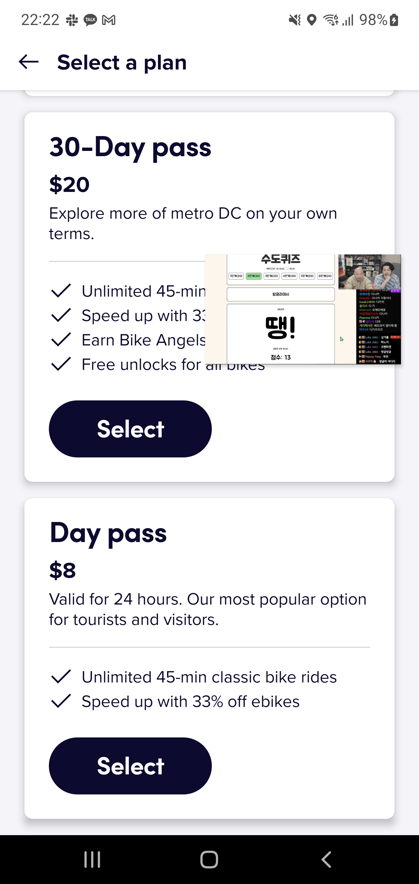이건 워싱턴D.C에서 타는 Capital bikeshare의 데이패스 가격표이고