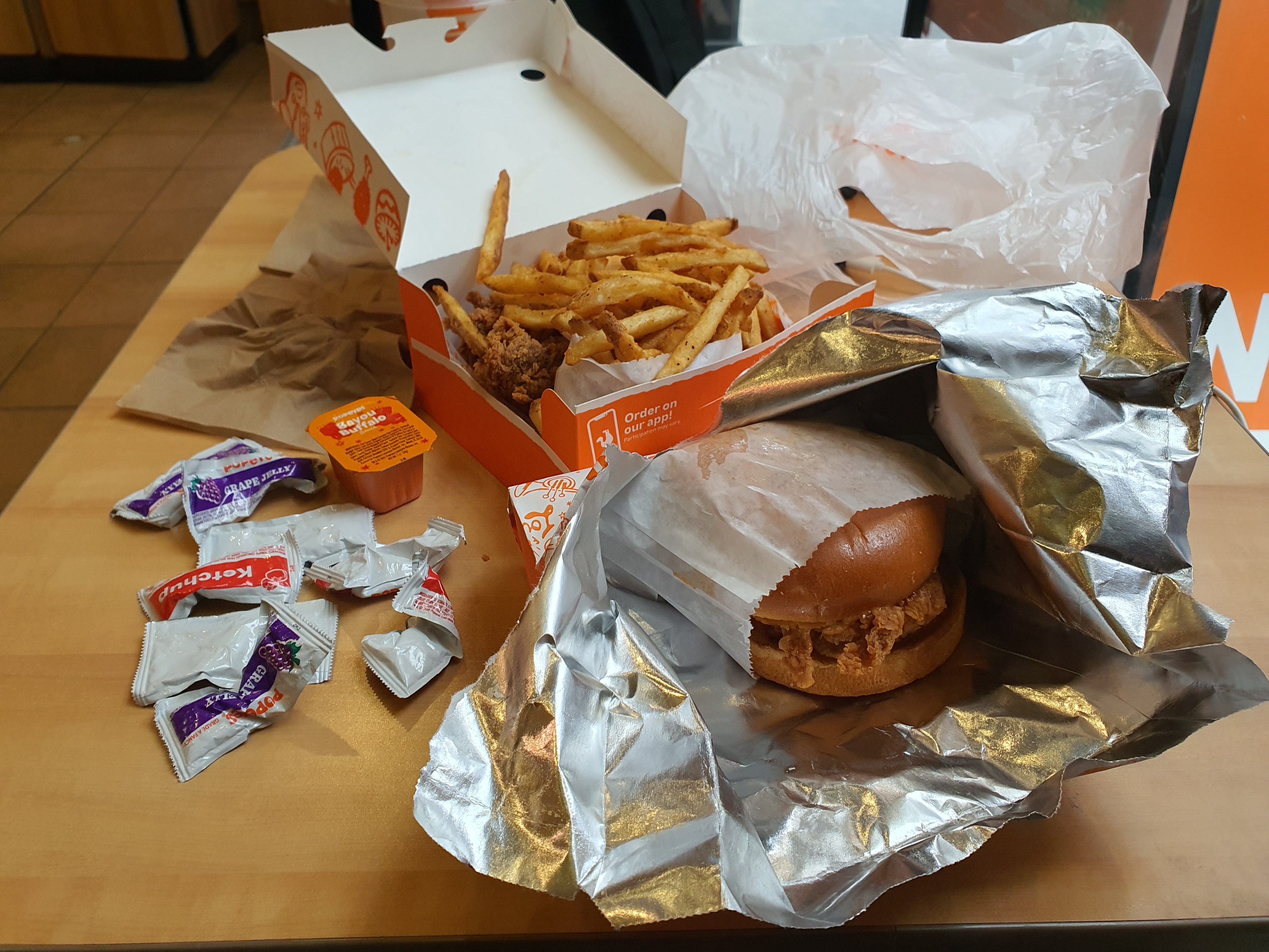 그리고 이걸 먹는 도중에 굉장히 재미있었던 게 있었는데 노숙자가 자연스럽게 가게에 들어와서 쓰레기통을 뒤지더니 남이 먹던 치킨박스를 찾은 뒤에 음료수병을 찾아서 자연스럽게, 마치 난 이 음식을 구매했고 구매한 사람들처럼 음료수를 담아서 나간다는 느낌으로 음료수까지 야무지게 채워서 나가는 모습을 봤다. 근데 이게 너무나도 자연스러운 상황이라는 것이 주변사람들이 아무렇지 않았다. 나도 그렇게 연기했는데 아무렇지 않지 않았다 ㅋㅋㅋㅋㅋ