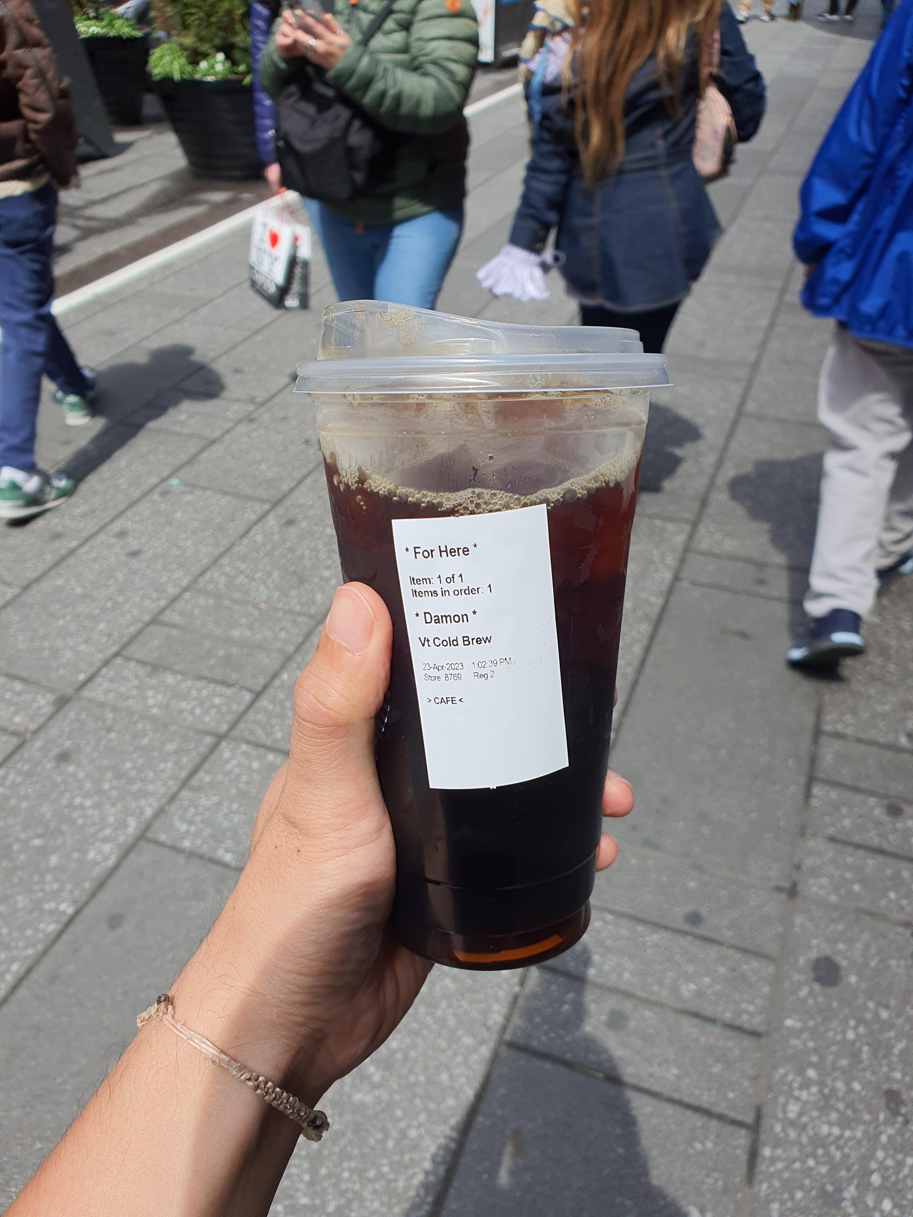 스벅 타임스 스퀘어점에서 산 콜드브루 벤티. 하이 하임 데이먼.