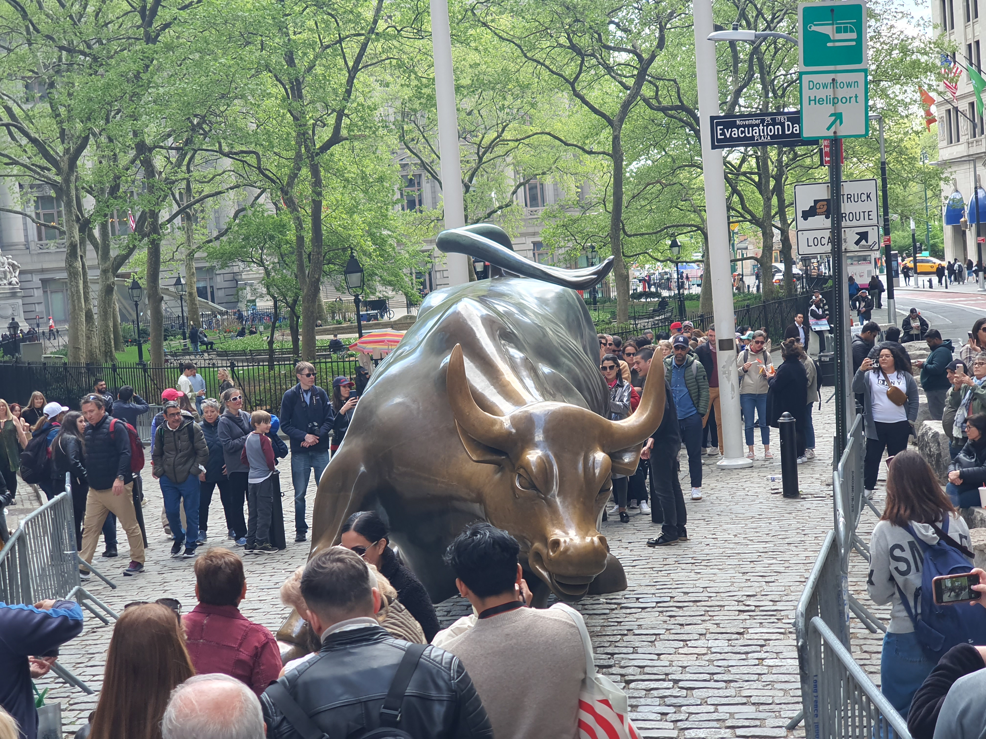 월스트릿과 불장을 의미하는 그 황소 동상이다. 기를 받으려는지 사진찍으려 대기하는 줄이 꽤나 길었다. 여기 와서 처음 알았던 점은 황소 불알이 꽤나 크고 리얼하게 달려있다는 점이고, 앞에서 소대가리와 함께 찍으려는 줄과 부랄과 찍으려는 줄 두 개가 양존했다.