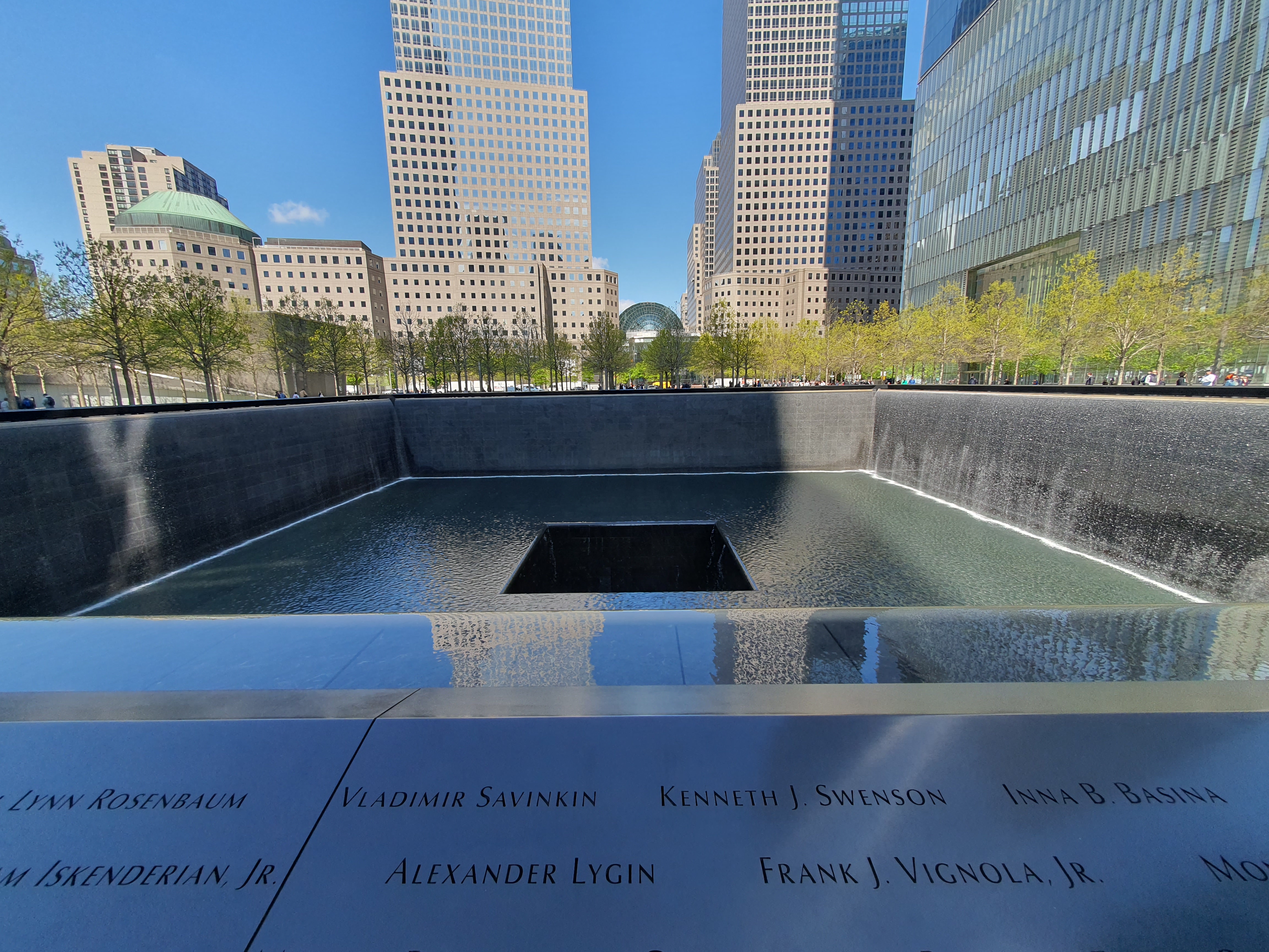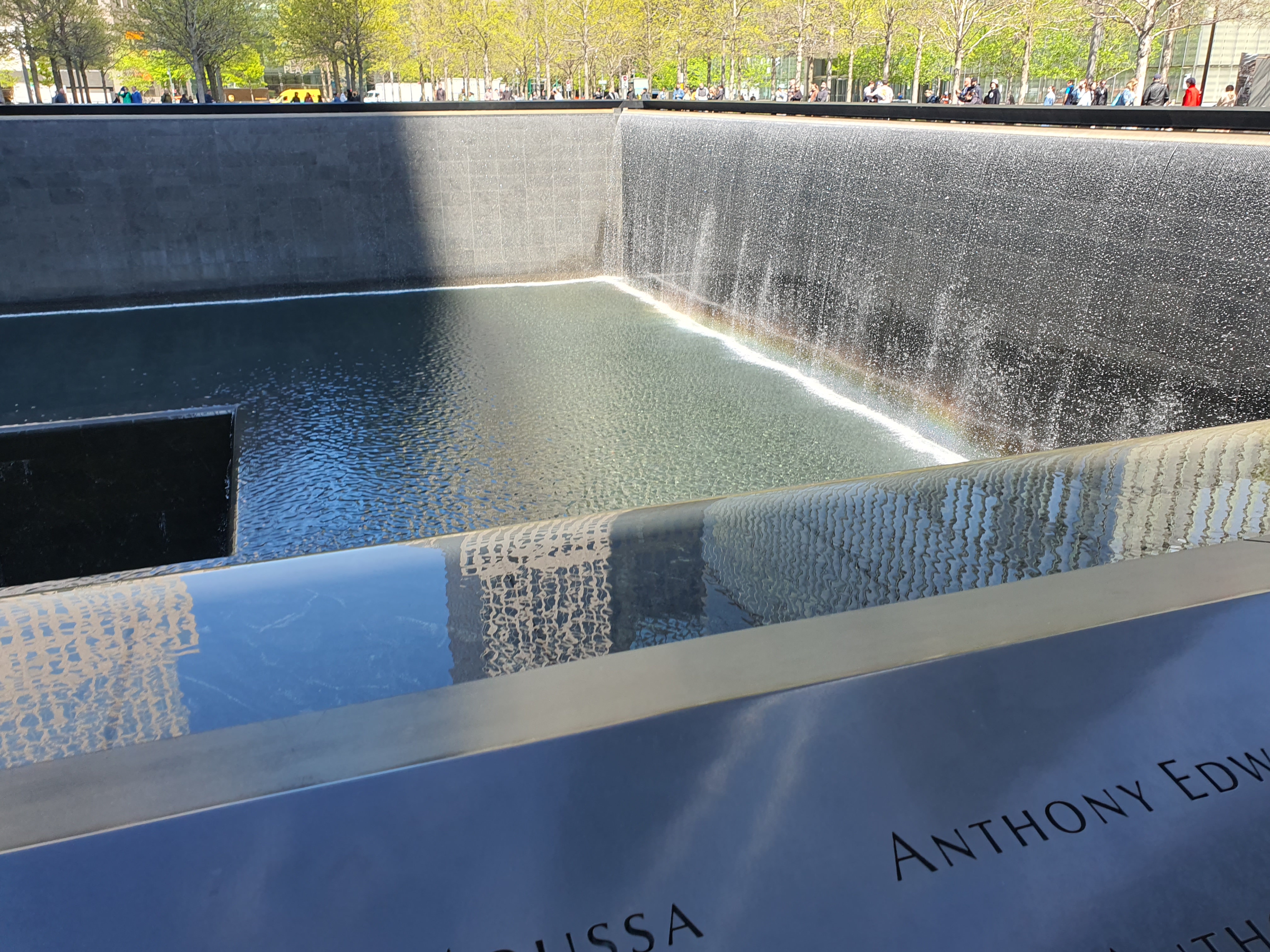테러로 무너진 쌍둥이 빌딩의 자리에는 분수가 자리잡았다. 기존 전통적인 서양의 분수방식은 아래에서 물을 쏴올리는, 물의 흐름을 거스르는 형태인데 이건 반대로 물을 아래로 흘리는 형태였다.