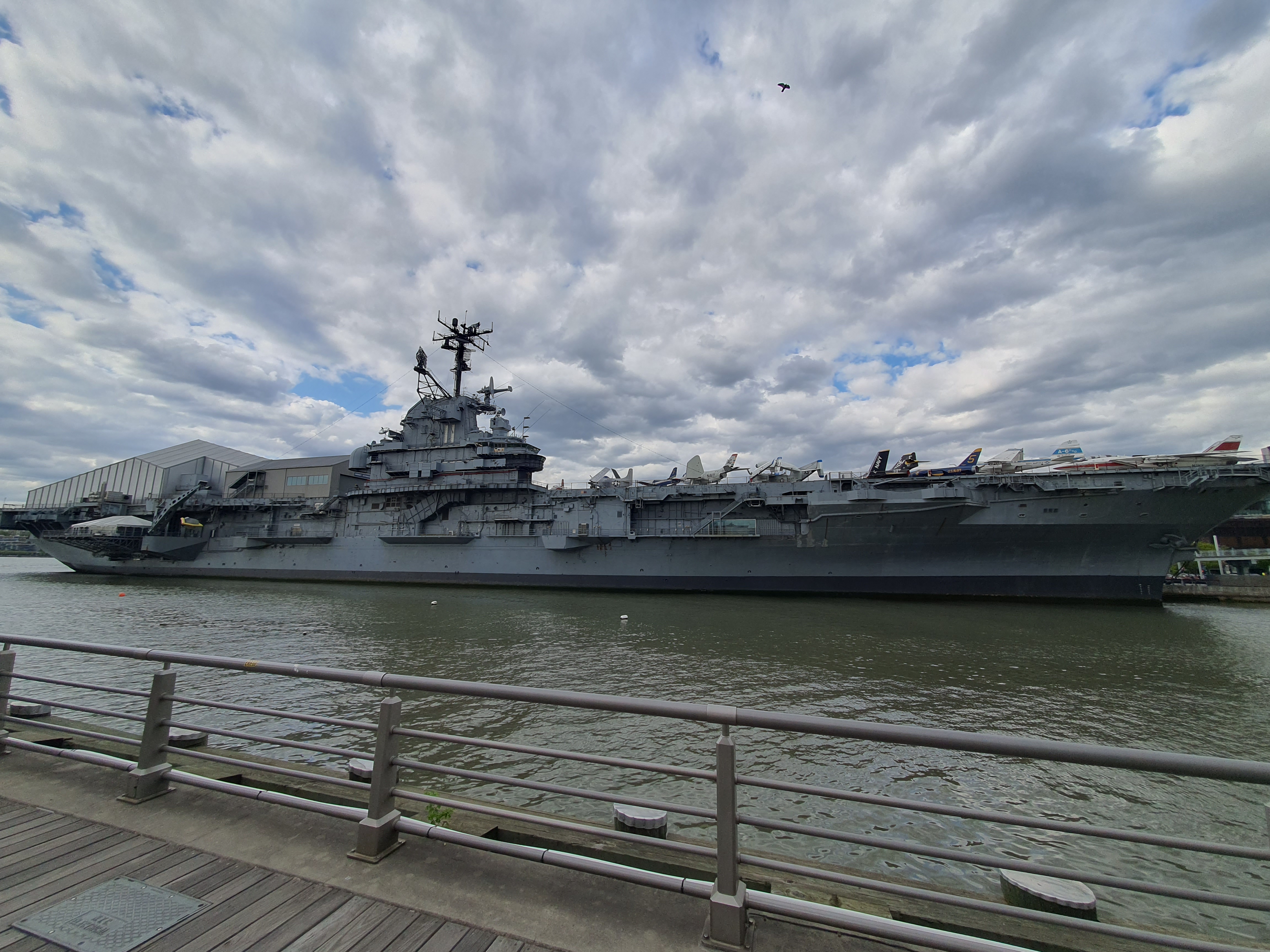 올라가다보니 발견한 군함. 이름은 인터피드 해양항공우주 박물관이었다. 퇴역군함을 박물관으로 쓰는 아이디어가 진짜 좋아보였다. 꽤나 오래된 거였는지 구글맵에는 아예 육지로 표시가 돼있더라.