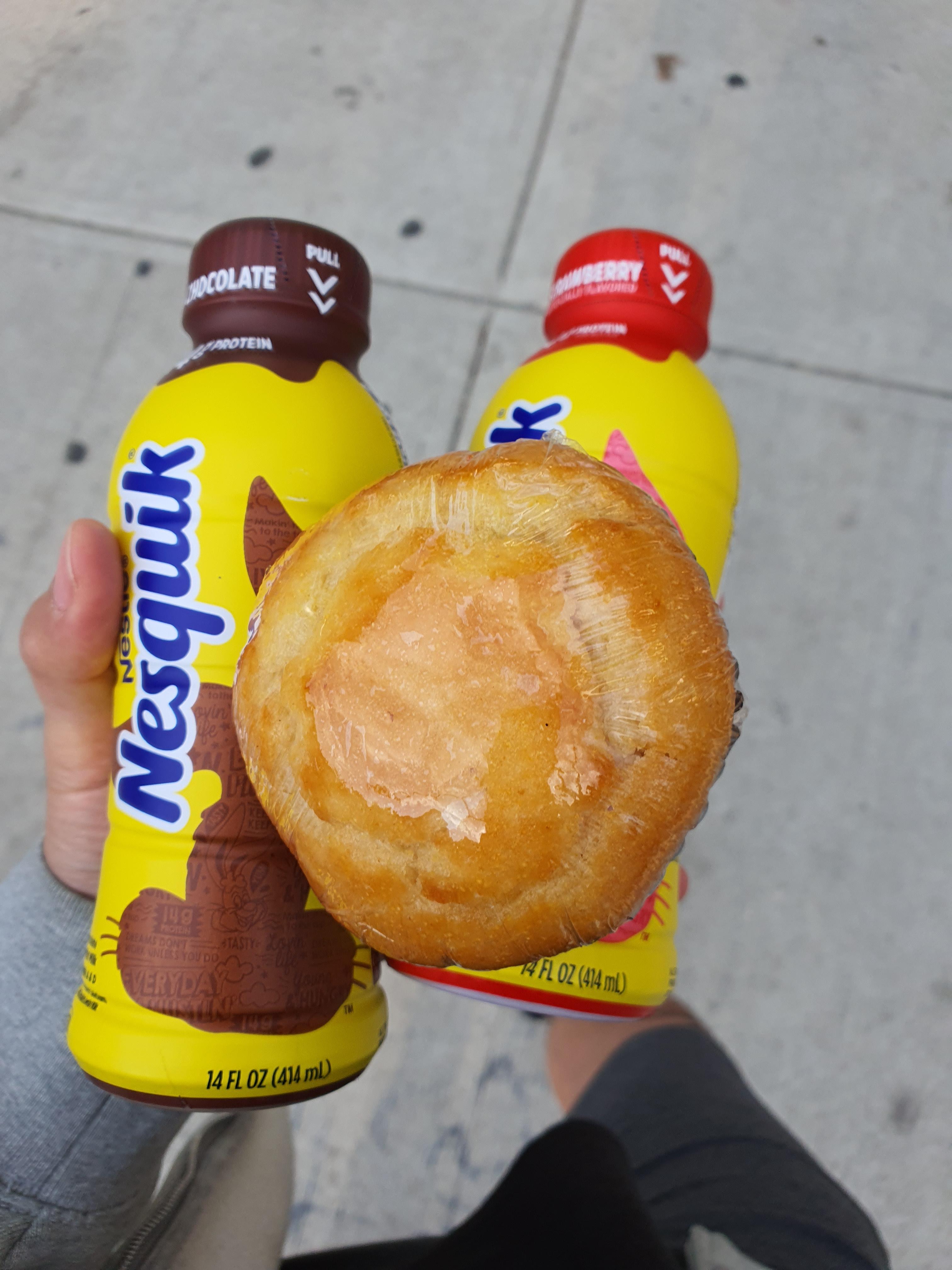 아침은 근처 네쇼날 푸드 마켓에서 판매하는 프로틴 네스퀵과 머핀. 진짜 존나 달았다.